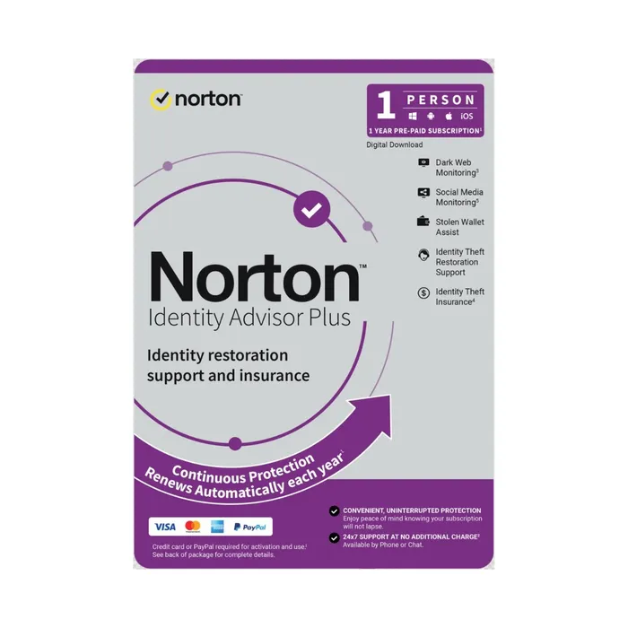 Norton Identity Advisor Plus – Software for 1 Devices – Includes VPN, PC Cloud Backup